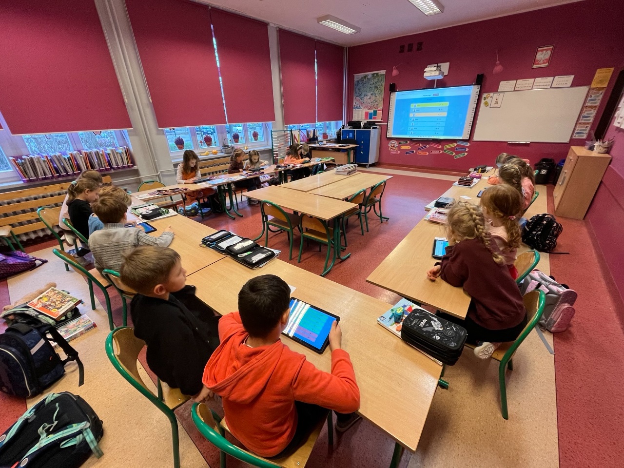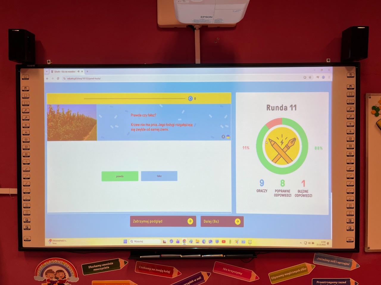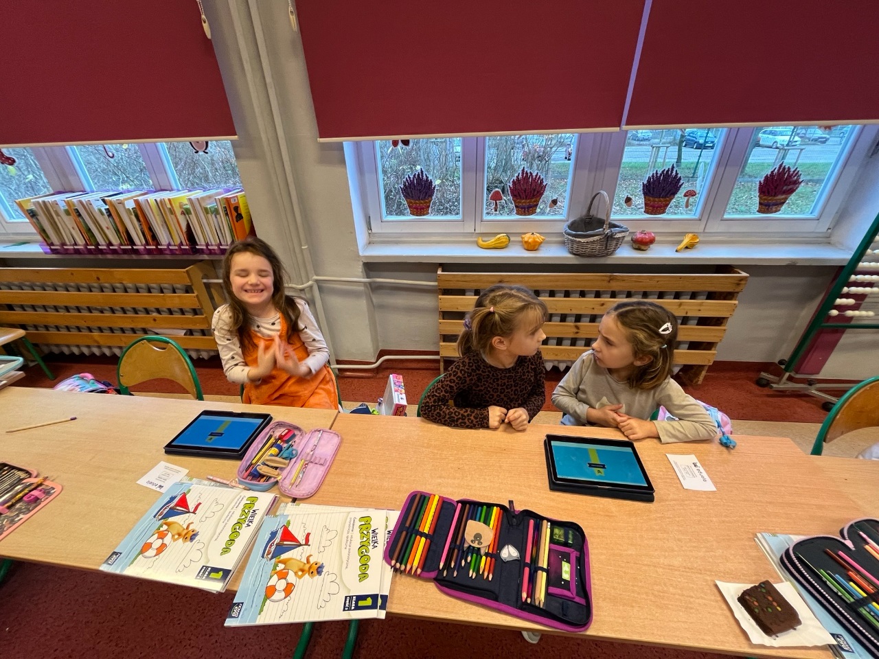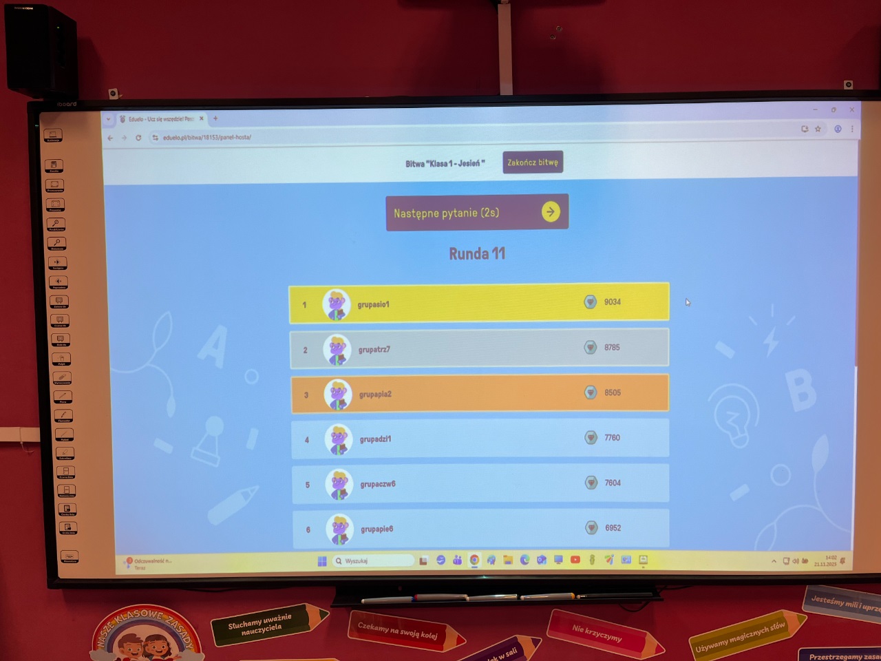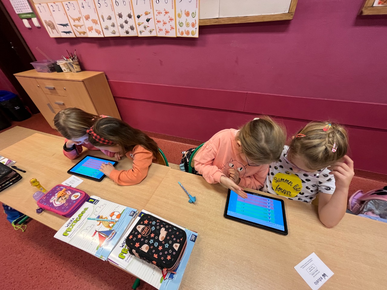 To była niezwykle emocjonująca lekcja podsumowująca wiedzę związaną z jesienią. Uczniowie klasy 1b na tabletach rozegrali swoją pierwszą bitwę wiedzową. Wykorzystali do tego platformę eduelo.pl. Emocji było mnóstwo: aby szybko i prawidłowo odpowiedzieć, a potem obserwować ranking po kolejnych pytaniach. Z pewnością to nie ostatnie spotkanie z eduelo.