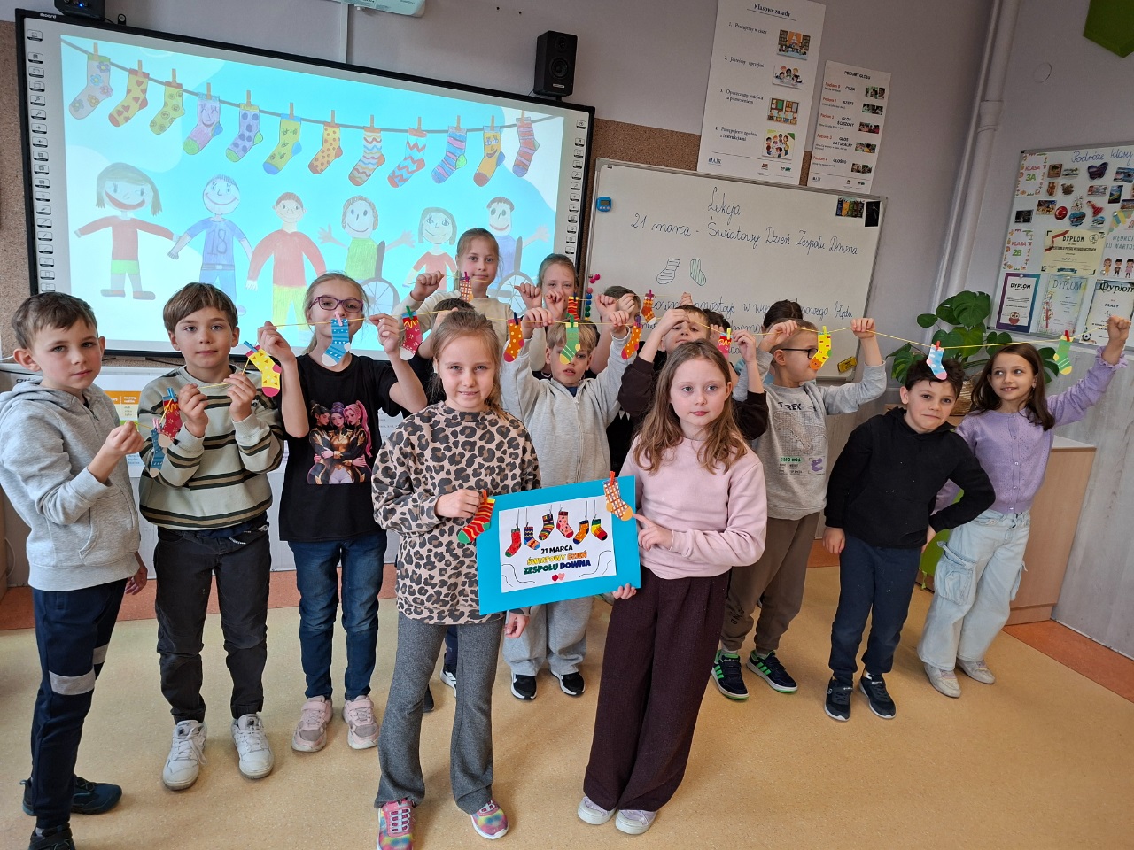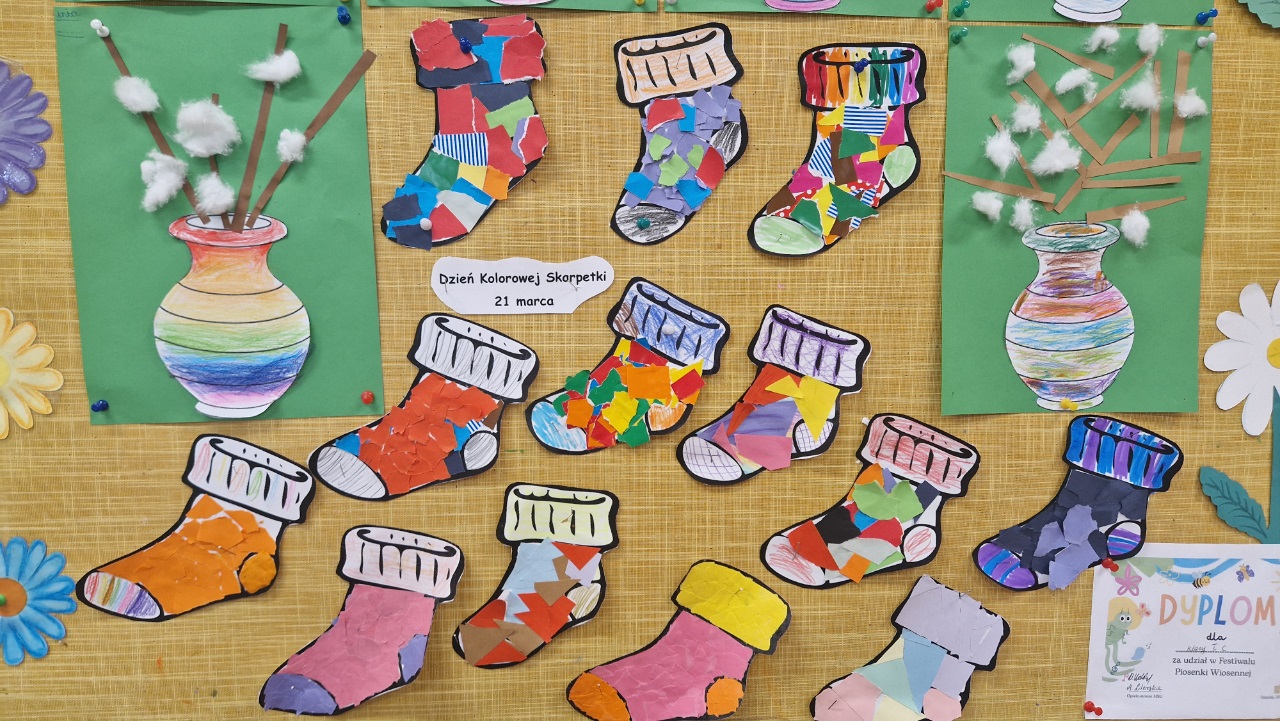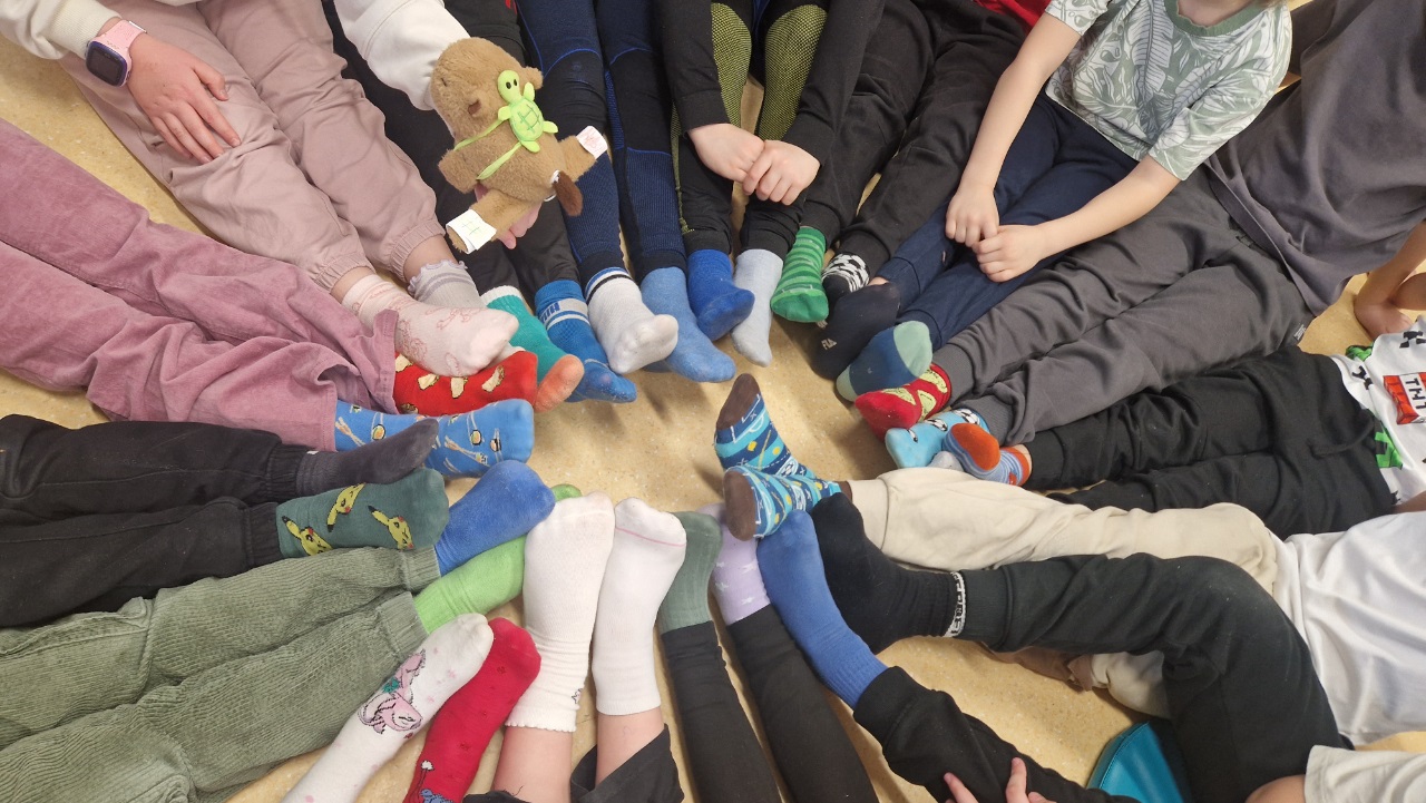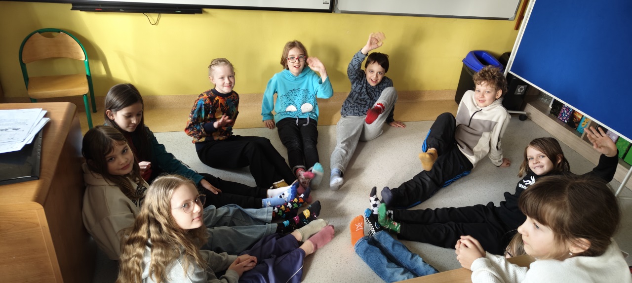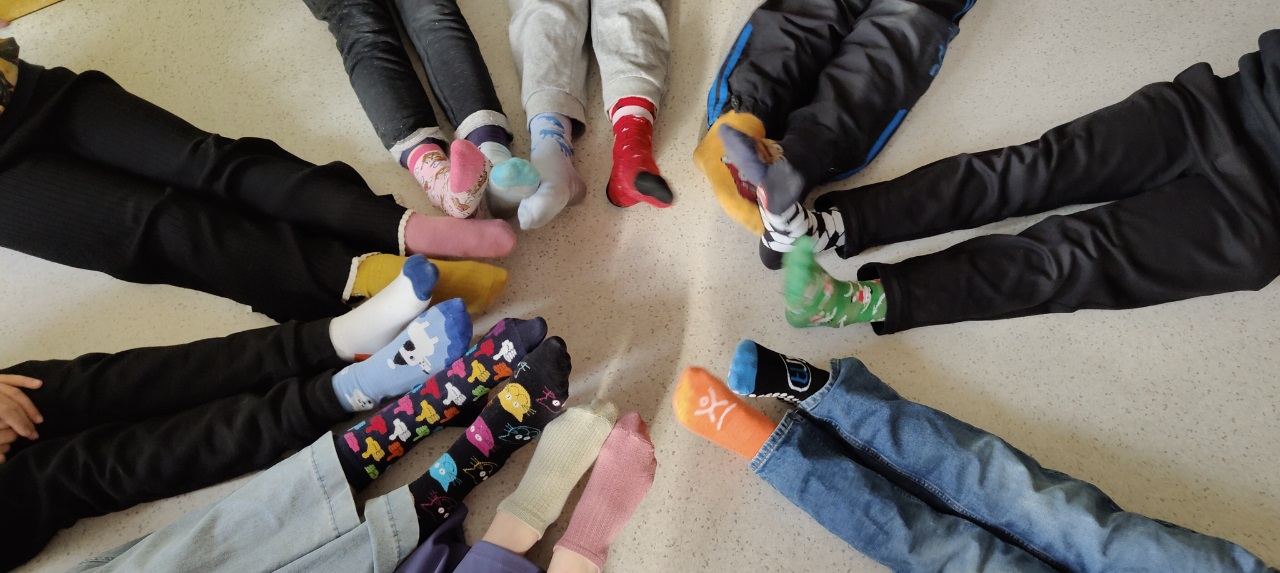 Dzieci z klas 1-3 obejrzały film, który wytłumaczył w dostępny i prosty sposób, że mimo różnic, wszyscy jesteśmy ważni i mamy równe prawa. Przy wesołych piosenkach nawiązujących do poruszanego tematu, dzieci stworzyły piękne, wesołe skarpety, które ozdobiła klasowe drzwi. Nie zapomnieliśmy oczywiście o kolorowych, nie do pary skarpetkach na naszych stopach 🧦