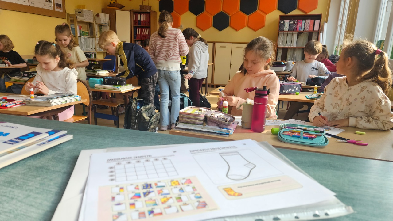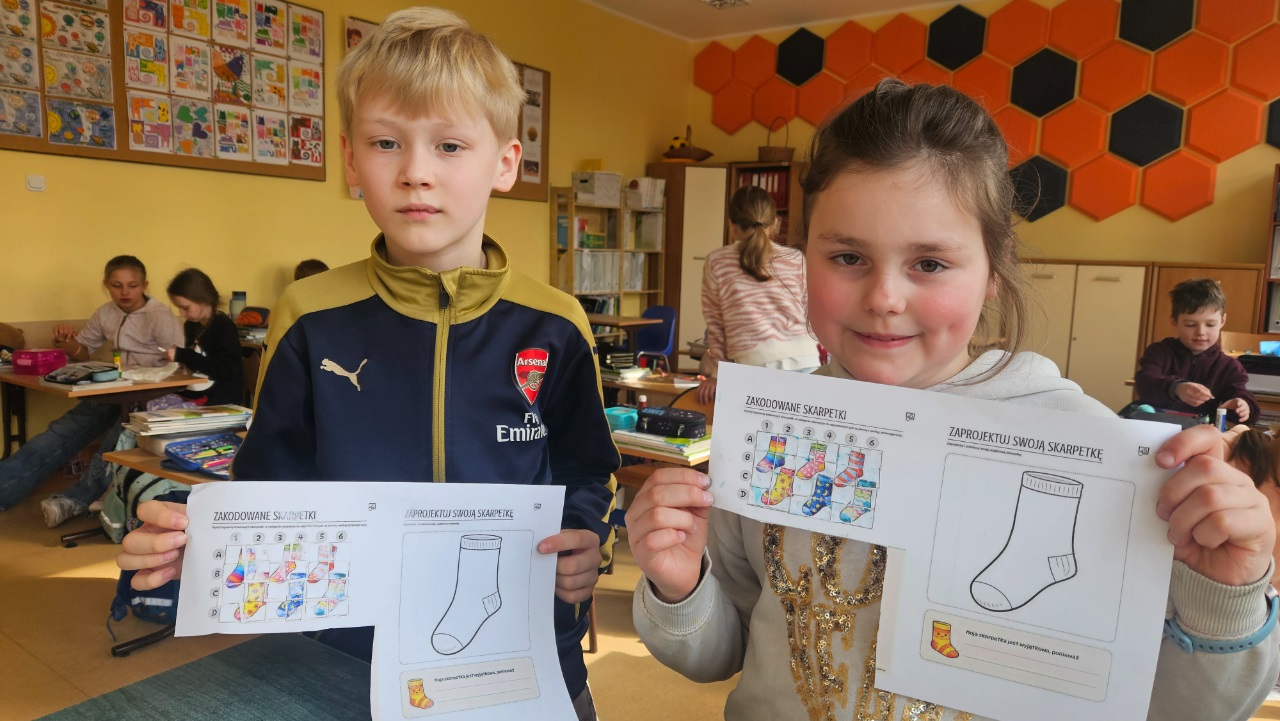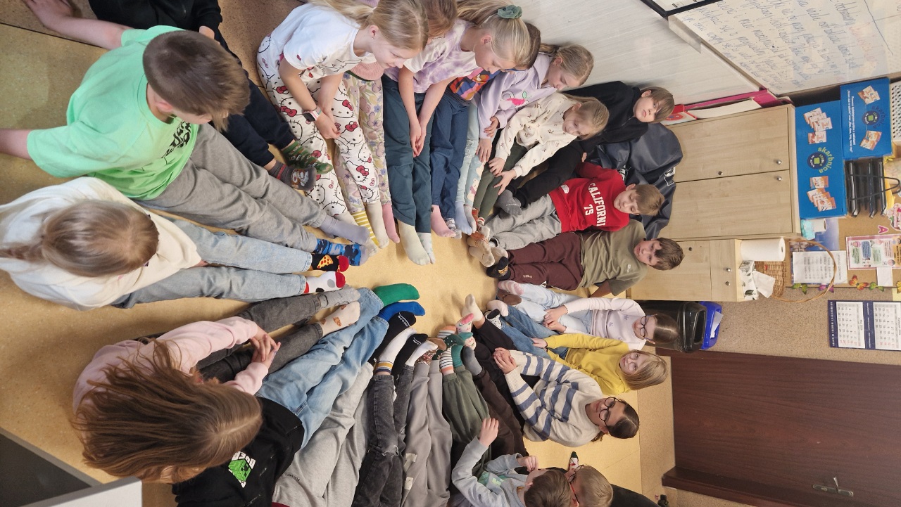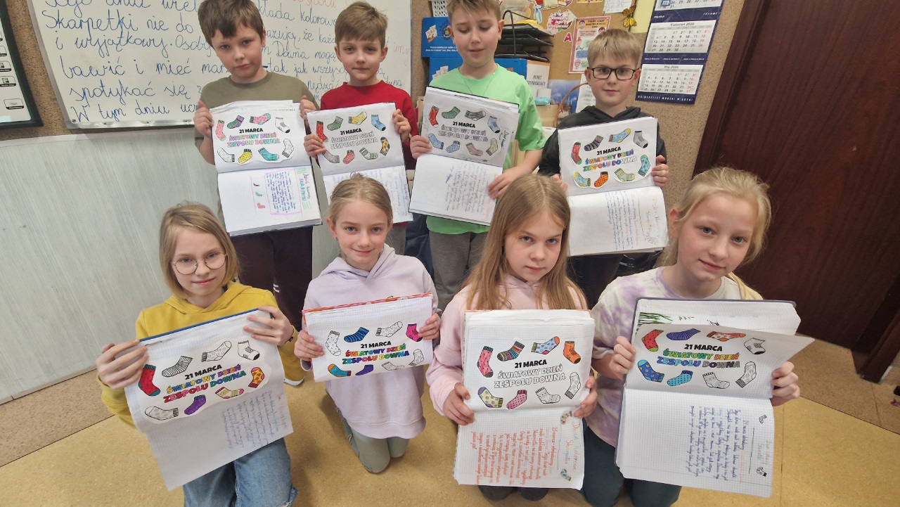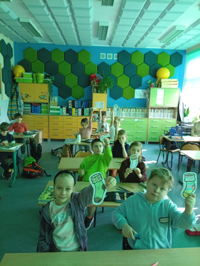 Dzieci z klas 1-3 obejrzały film, który wytłumaczył w dostępny i prosty sposób, że mimo różnic, wszyscy jesteśmy ważni i mamy równe prawa. Przy wesołych piosenkach nawiązujących do poruszanego tematu, dzieci stworzyły piękne, wesołe skarpety, które ozdobiła klasowe drzwi. Nie zapomnieliśmy oczywiście o kolorowych, nie do pary skarpetkach na naszych stopach 🧦
