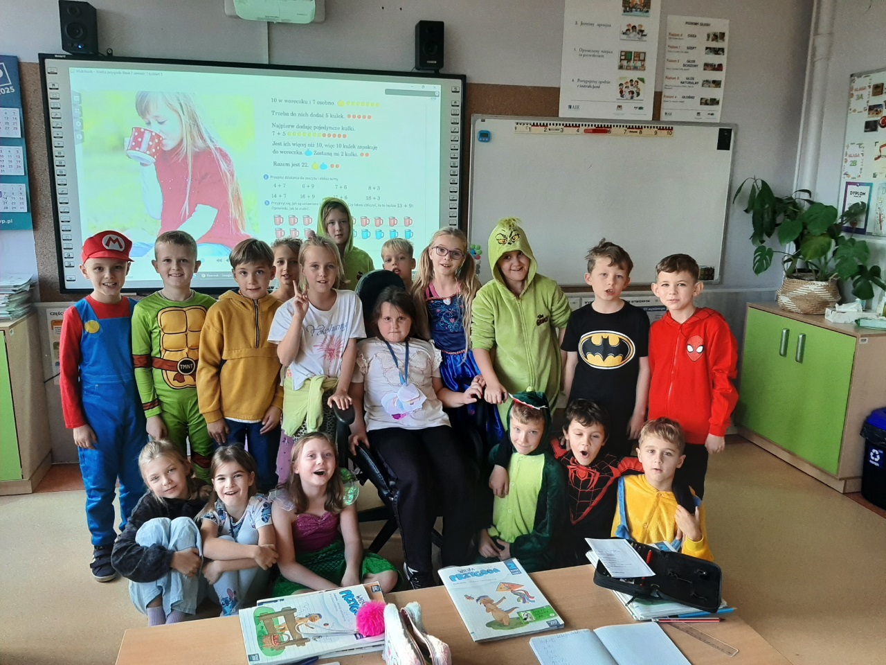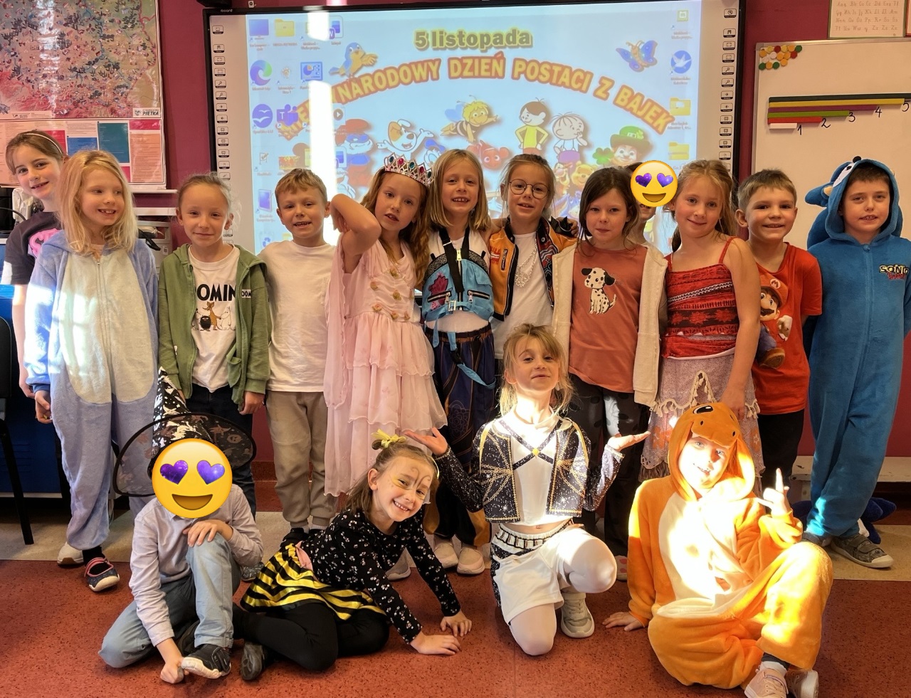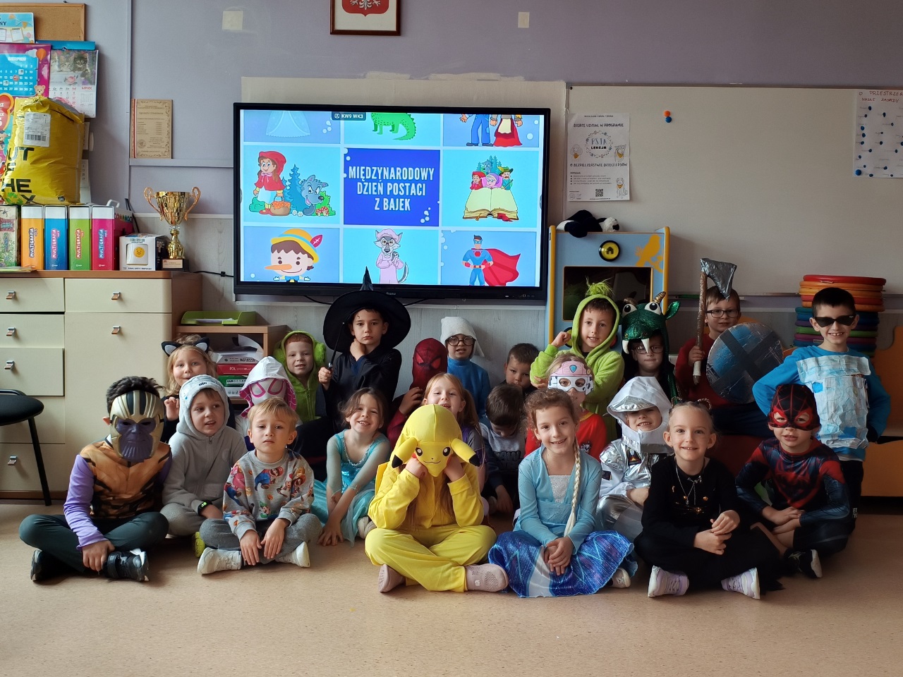 W miniony piątek dzieci z klas 0-3 obchodziły Międzynarodowy Dzień Postaci z Bajek. Na szkolnym korytarzu podziwialiśmy wspaniałe przebrania, za zajęciach były zagadki filmowe, muzyczne, quizy, kalambury i wiele śmiechu. Długie przerwy spędziliśmy w rytmie wspaniałych piosenek i szalonego tańca.