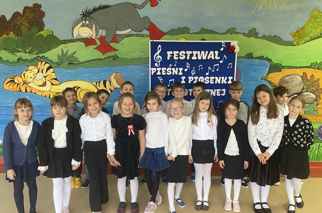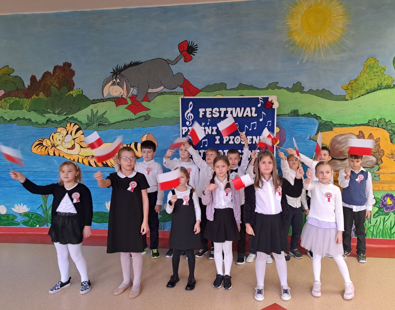 Z okazji Narodowego Święta Niepodległości dzieci z klas 0-3 przygotowały wspaniałe występy w ramach Festiwalu Pieśni i Piosenki Patriotycznej.