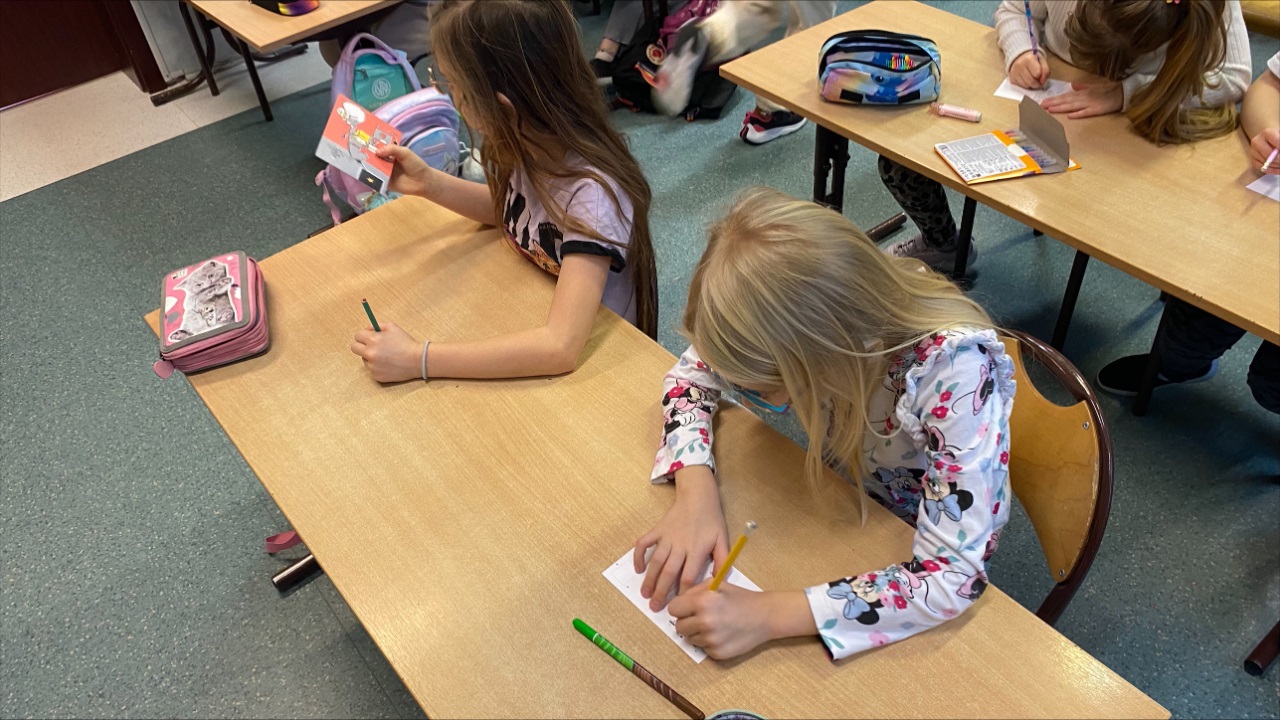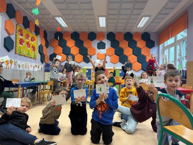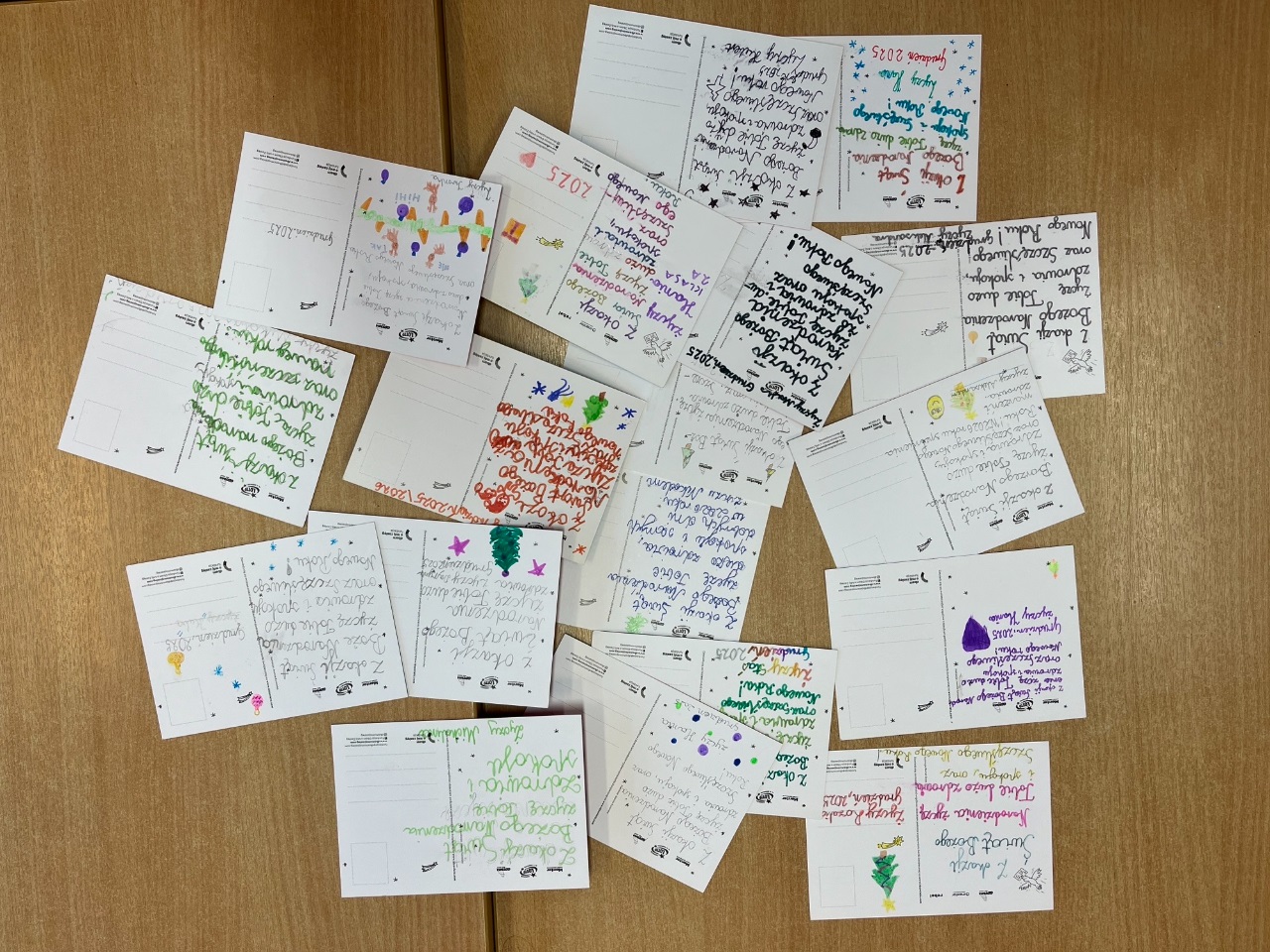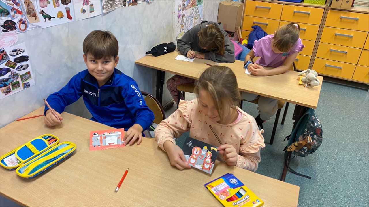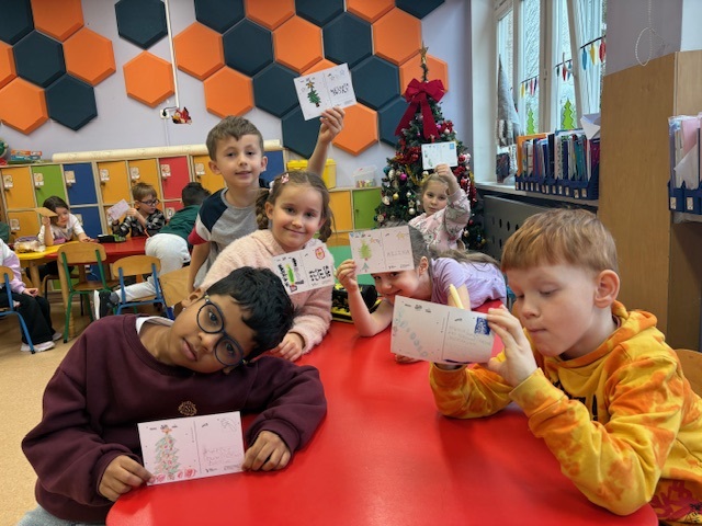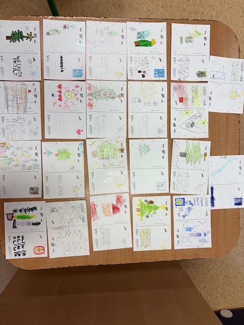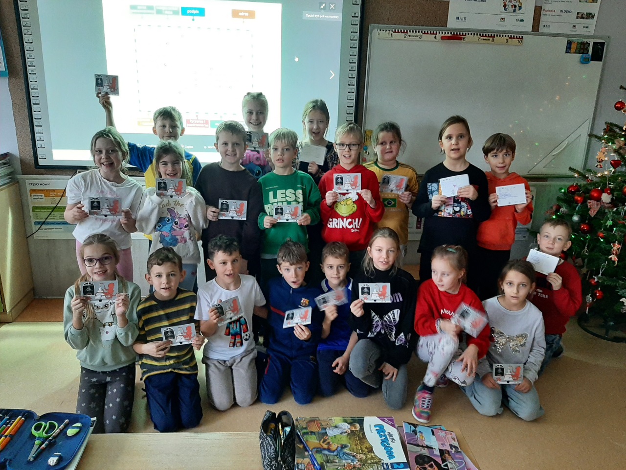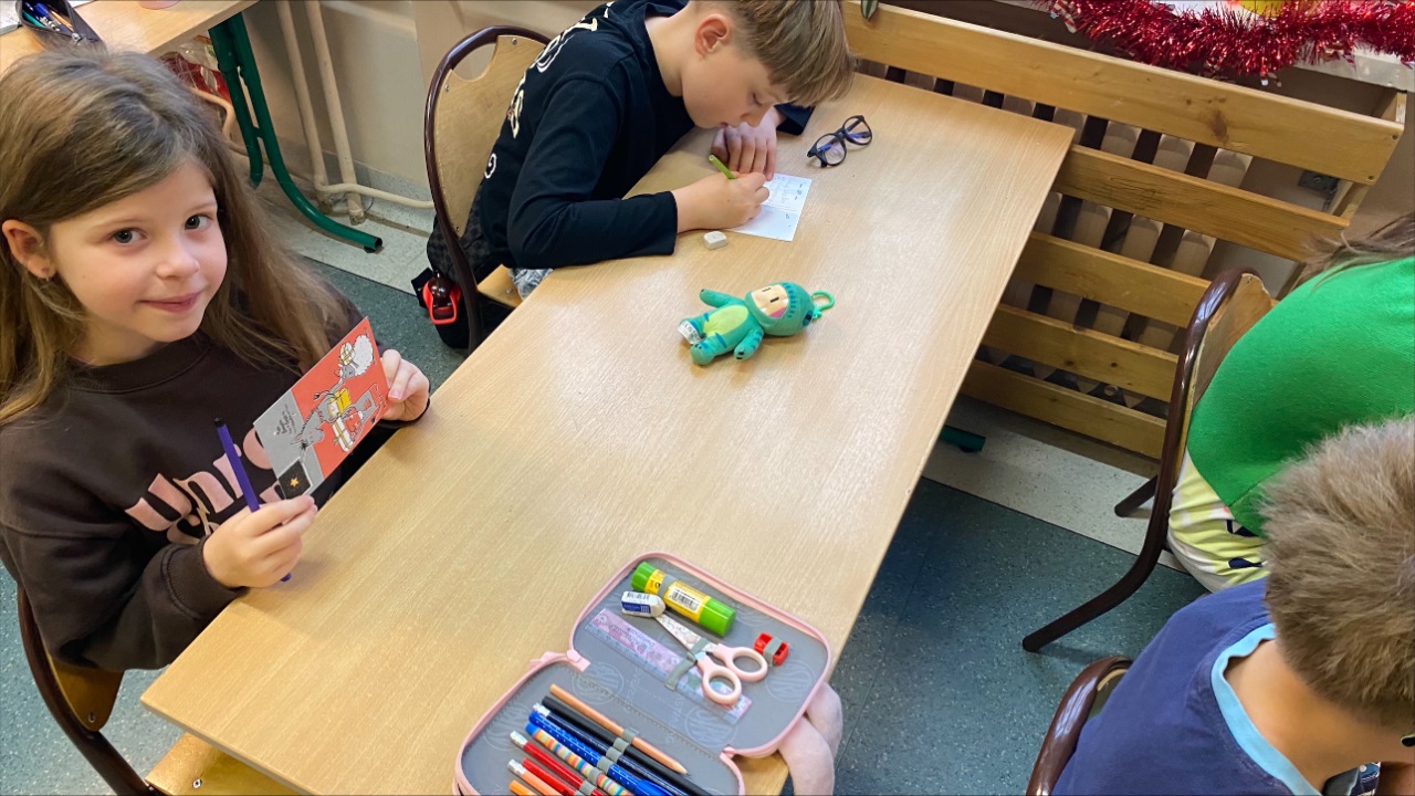Dzieci z klas 0-3 po raz kolejny wzięły udział w ogólnopolskiej kampanii społecznej “IDĄ ŚWIĘTA, NIE O SMS-IE, LECZ O KARTCE PAMIĘTAJ”, której celem jest zwrócenie uwagi na ważność relacji międzyludzkich w świecie zdominowanym przez nowe technologie. Zakupione w Fundacji Dbam o Mój Z@sięg bożonarodzeniowe kartki, dzieci z radością wypełniły życzeniami i rysunkami, aby wysłać lub przekazać swoim bliskim, osobom samotnym i potrzebującym.