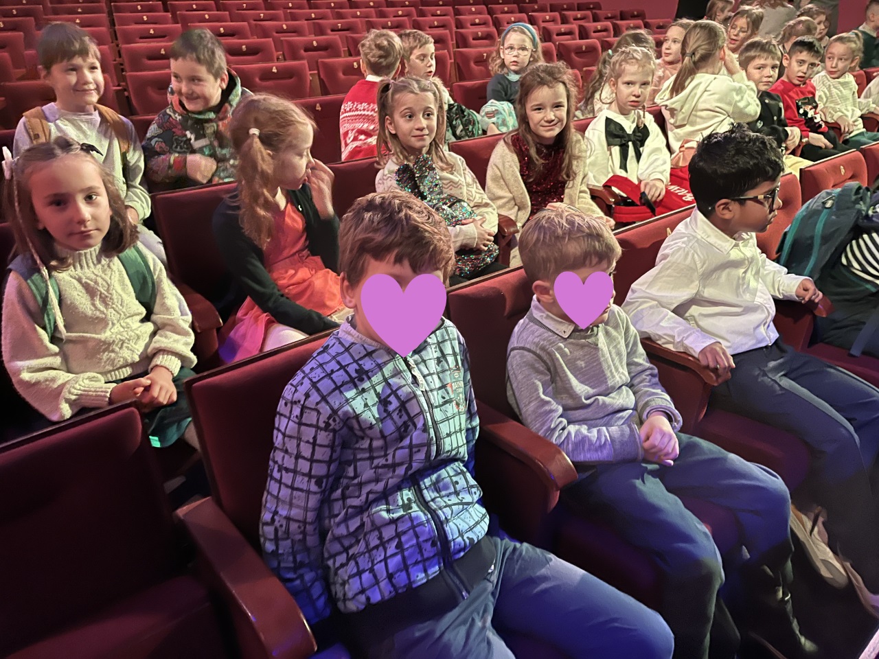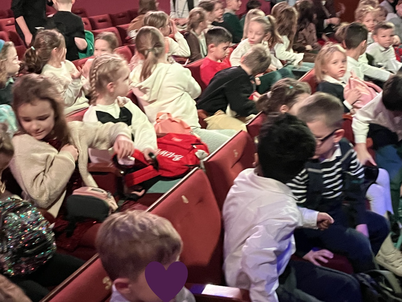 W ostatni szkolny dzień starego roku grupa przedszkolna i klasa 1b udały się do Teatru Miniatura na spektakl "Opowieść wigilijna.Wrzeszcz".