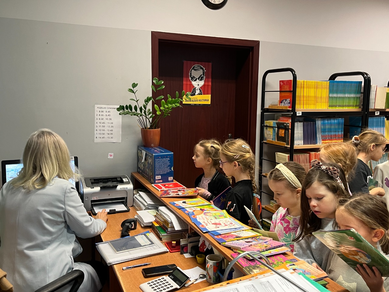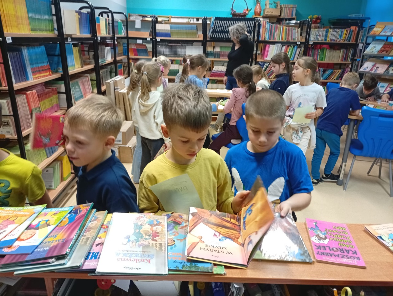 Uczniowie z klas 1a, 1b i 1c zostali zaproszeni przez p.Ewę do szkolnej biblioteki. Zapoznali się z zasadami obowiązującymi z bibliotece i czytelni. Złożyli ślubowanie i zostali pasowani na czytelników. Po raz pierwszy wypożyczyli wybrane książki. Z wielką radością już odwiedzają samodzielnie szkolną bibliotekę.