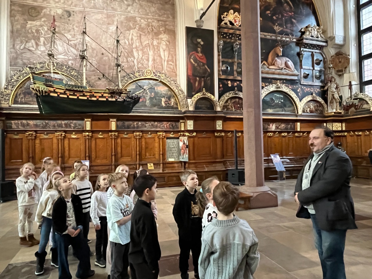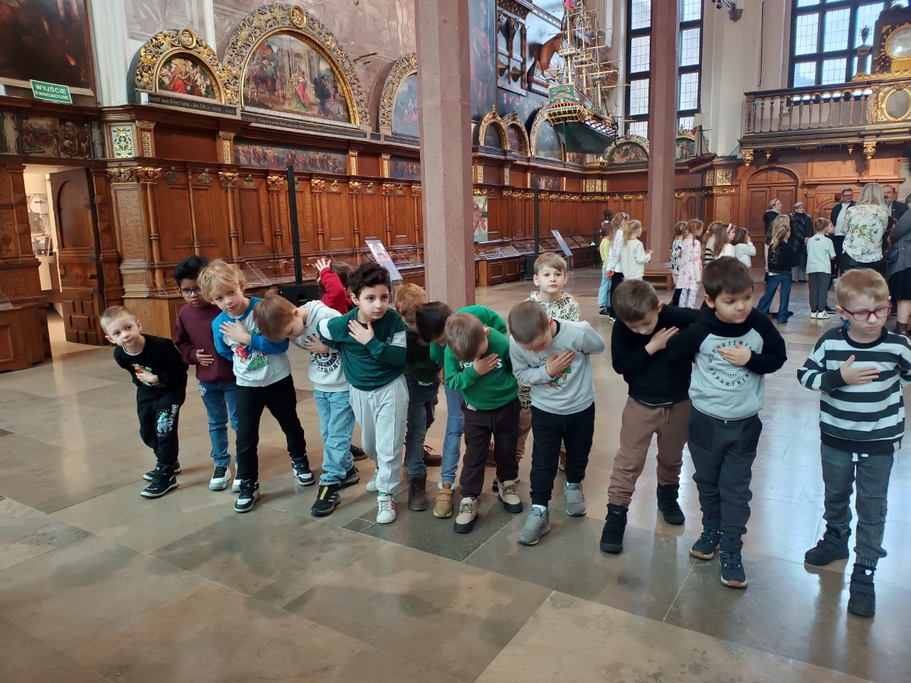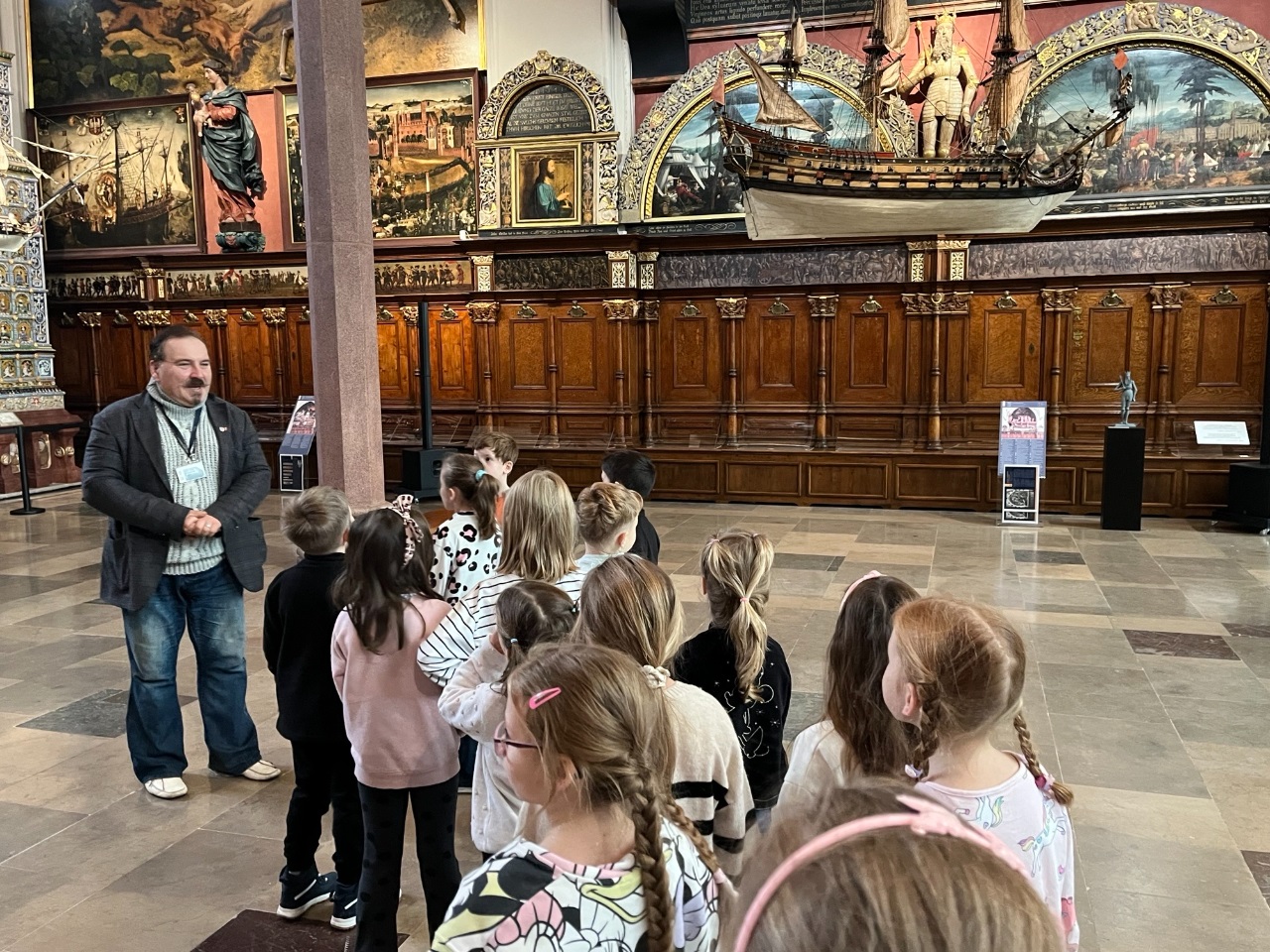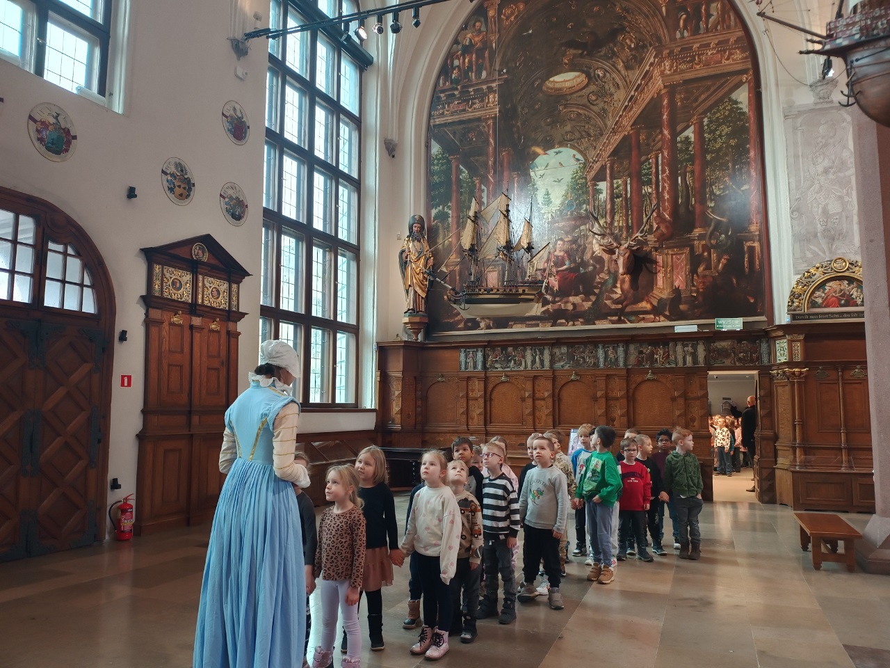 W czwartkowy poranek grupa przedszkolna i klasa 1b udały się na lekcje muzealne do Dworu Artusa.