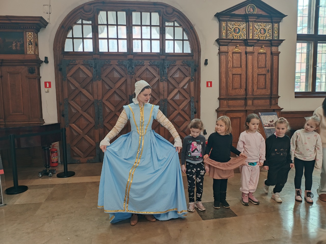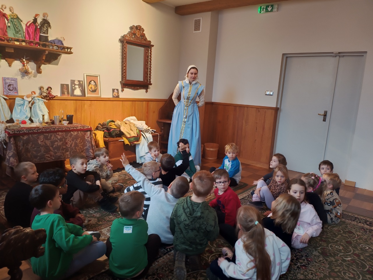 Przedszkolaki uczestniczyły w spotkaniu z Panienką z Okienka - opowieść o życiu w dawnym Gdańsku. To inspirujące spotkanie pokazało dzieciom, jak inne były obyczaje i mody, a także etykieta rządząca życiem młodych ludzi w XVII wieku w Gdańsku. Przedszkolaki poznały stroje, codzienne narzędzia i zabawki oraz sposoby na spędzanie wolnego czasu.